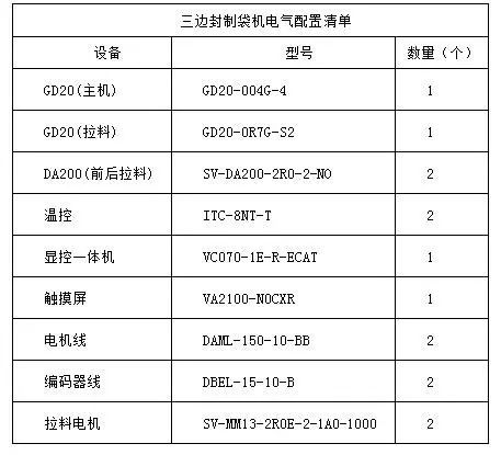 英威騰三邊封制袋機(jī)系統(tǒng)配置清單